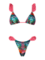 This two-piece swimwear set features a padded tie-up bra and thong bottoms, combining plaid and floral patterns for a stylish, feminine look. Designed for comfort and support, the adjustable ties ensure a perfect fit, while the padded bra enhances shape and confidence. Ideal for those seeking a chic and flattering bathing suit that stands out at the beach or pool.