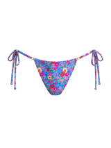 Striking bikini featuring laced-up detailing, bold print, and a backless design. The thong bottom and daring cuts deliver a confident, fashion-forward look. Versatile all-season swimwear for those who want standout beach style. Printed bikini bottom Swimlest signature floral print Adjustable side...