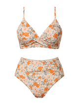 Stay stylish on the beach with the SWIMLEST Tank Top High Waist Bikini Sets. This two-piece swimsuit features a playful orange floral design and a flattering high waist bottom. The twist tank top adds a touch of elegance to your beach look. With CUPSHE, you'll feel confident and comfortable all day long.