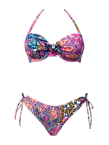 The Ruby-Paisley Swim showcases a bold printed pattern anchored by underwire construction that prioritizes lift and contour. This halter two-piece transitions seamlessly from poolside relaxation to active water use, with engineered support that maintains its shape and fit. The neckline design offers both security and visual sophistication, while the coordinated print elevates your resort aesthetic. Built for those who value precision tailoring and distinctive style.