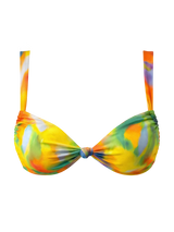 The Zari-Luxe Bikini Top showcases striking tie-dye artistry with a sophisticated knotted design and refined high-cut profile. Crafted with durable materials, this statement piece delivers both visual impact and dependable performance across sizes S to XL. Ideal for swimmers seeking a blend of contemporary aesthetics and practical comfort during water activities and coastal getaways.